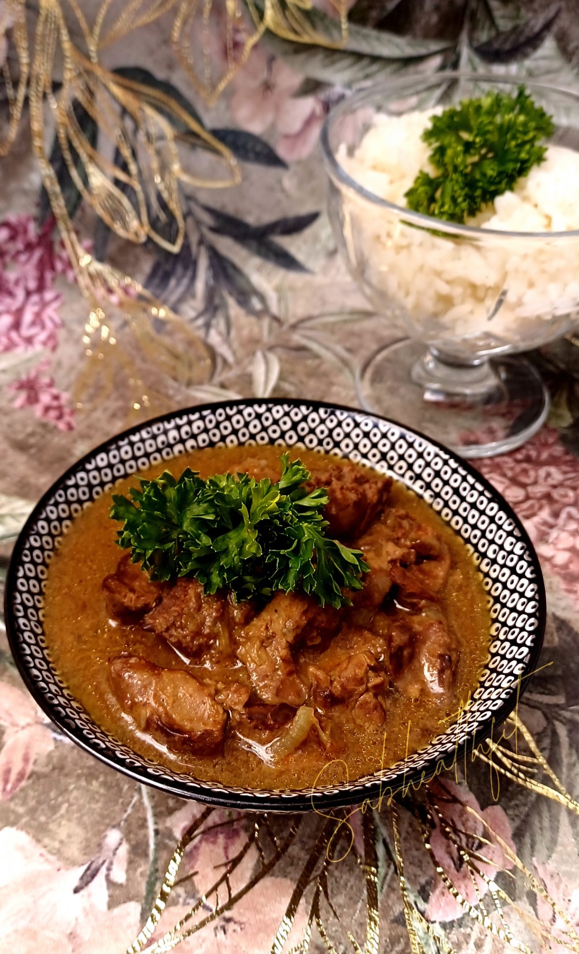 Játra omyjeme pod tekoucí vodou a necháme odkapat. Mezitím na pánvi rozehřejeme ghí a přidáme šalotku nasekanou na jemno. Šalotku restujeme dozlatova a lehce zasypeme moukou, stále restujeme. Do rozpálené pánve se šalotkou přidáme omytá játra a restujeme, dokud se nezatáhnou. Poté podlijeme přibližně 1 litrem vody a necháme vařit asi 20 minut pod pokličkou. Na posledních 10 minut poklici sundáme a necháme vodu odpařovat do zhoustnutí směsi. Nakonec osolíme, opepříme a přidáme drcený kmín. Krátce dovaříme.