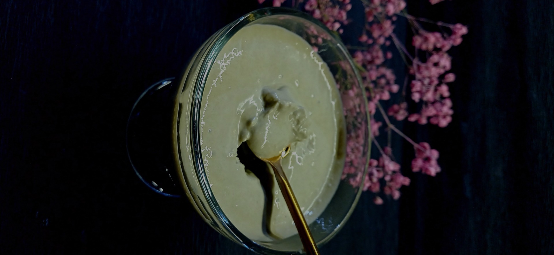 - Do nádoby tyčového mixéru vložíme řecký jogurt, vanilkový extrakt a erythritol