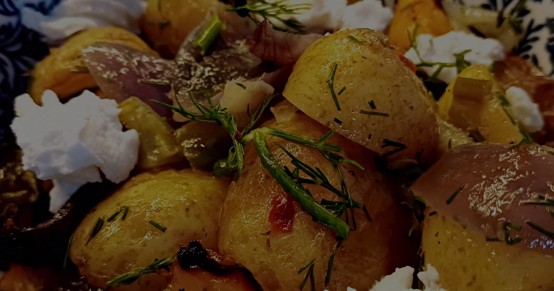 - Po vytažení z trouby posypte nasekaným čerstvým koprem (přidávejte až po upečení, aby si kopr zachoval barvu a svěžest)