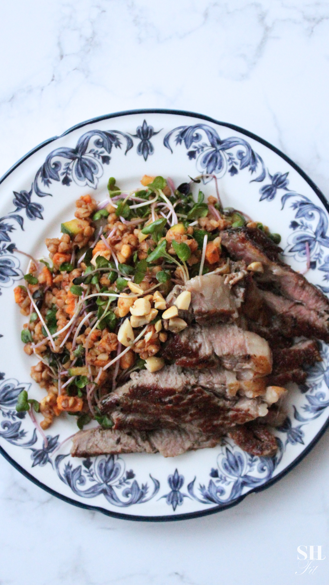 Vychutnej si teplý salát z pohanky, klíčků ředkvičky a slaných arašídů – skvělou přílohu ke steaku či rybě s 10 gramy bílkovin v jedné porci.