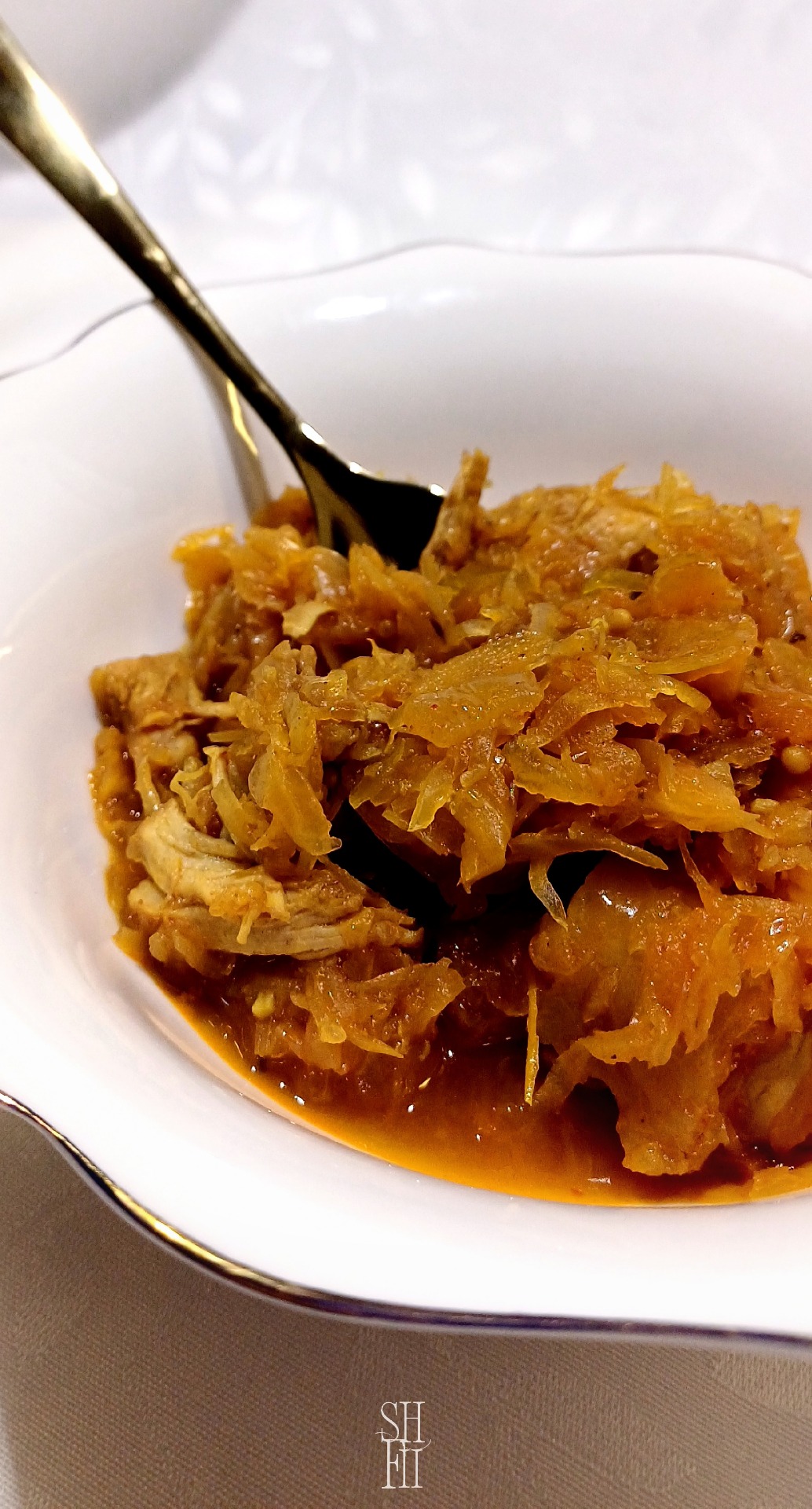 Nezahuštěný guláš z kuřecího masa a zelí voní po Tikka Masale, kurkumě a česneku a překvapí lehkostí i plnou, vyváženou chutí. Pomalé dušení umožní koření krásně splynout a vytvořit voňavou, jemně pikantní omáčku i bez jediné kapky mouky.